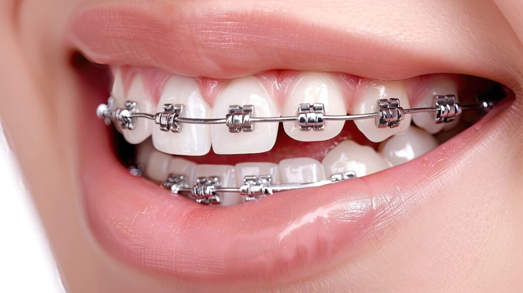 Braces (clips) gradually move teeth into proper alignment using controlled pressure.
